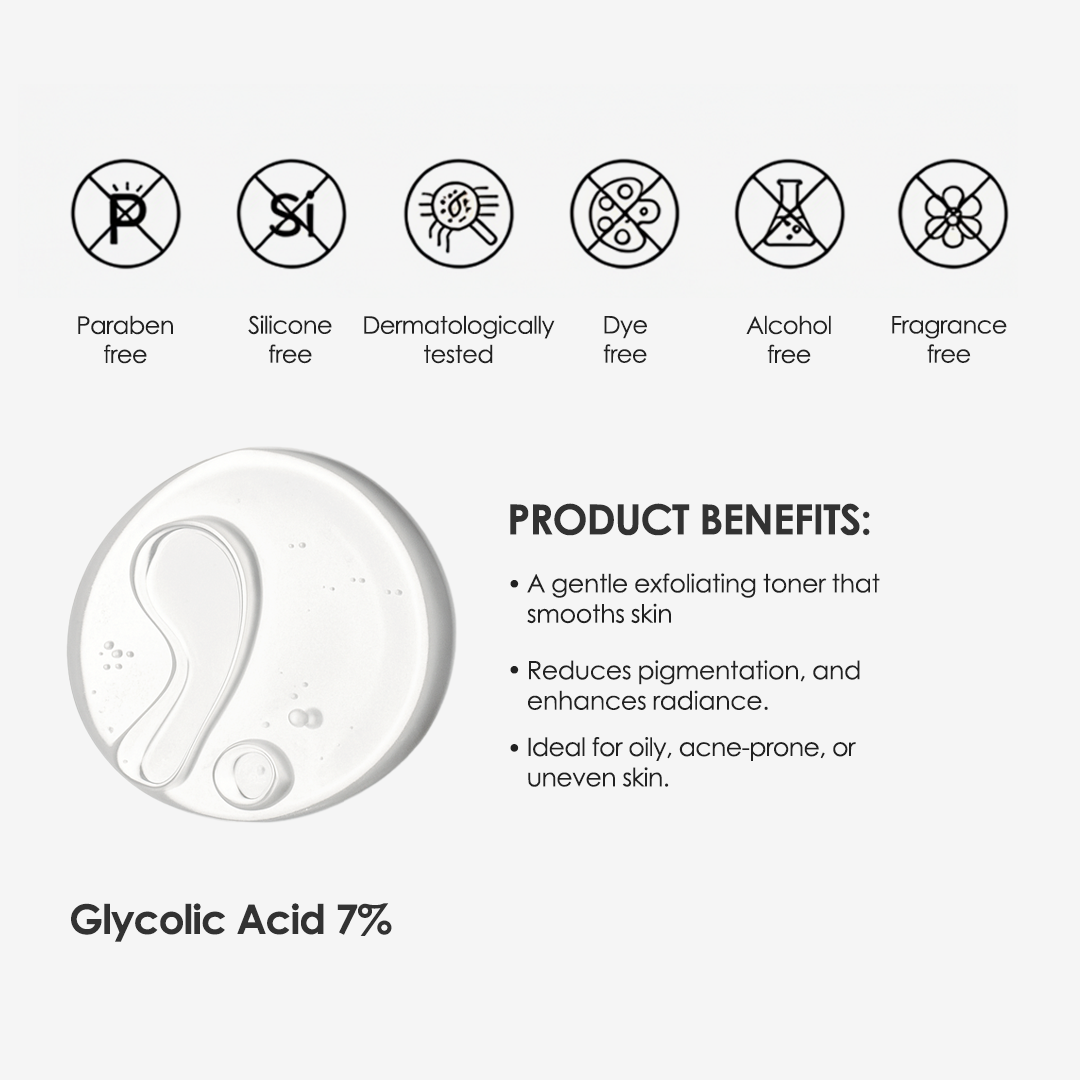 Unleash a luminous glow with Glycolic Acid 7% Exfoliating Toner. This potent AHA exfoliator refines texture, evens skin tone, and reduces fine lines.